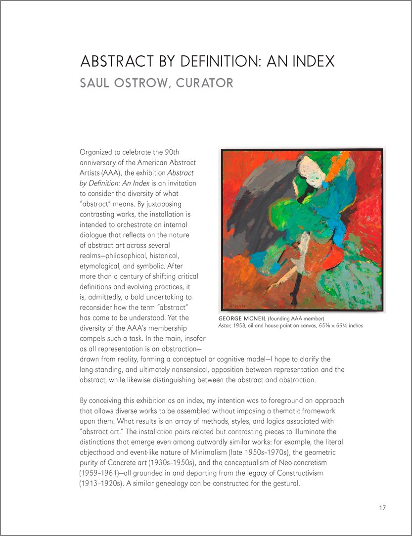 The exhibition Abstract by Definition: An Index is an invitation to consider the diversity of what “abstract” means. By juxtaposing contrasting works, the installation is intended to orchestrate an internal dialogue that reflects on the nature of abstract art across several realms—philosophical, historical, etymological, and symbolic.